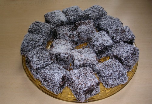 A szokásos módon elkészítjük a tojás nélküli piskótatésztát, és egy kb. 20x30 cm-es tepsiben kisütjük. Közben a kakaóport elkeverjük a nyírfacukorral (xilittel), a pálmazsírral, és kb. 1 dl vízzel felmelegítjük. Ne forraljuk, csak olvasszuk fel a benne lévő anyagokat, és jól keverjük össze. Amikor kihűlt a tészta, vágjuk fel egyforma kockákra, és két villa segítségével, óvatosan merítsük meg a kakaós masszába. Kicsit csepegtessük le, majd minden oldalát hempergessük bele a kókuszreszelékbe.