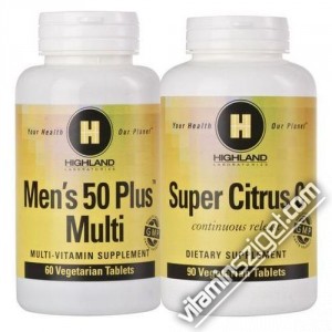 1 db Highland PR641 Men's 50 Plus Multi - féfi multivitamin (60 db) és 1 db Highland PR325 Super Citrus C vitamin 1000 mg - magas bioflavonoid tartalommal (90db).